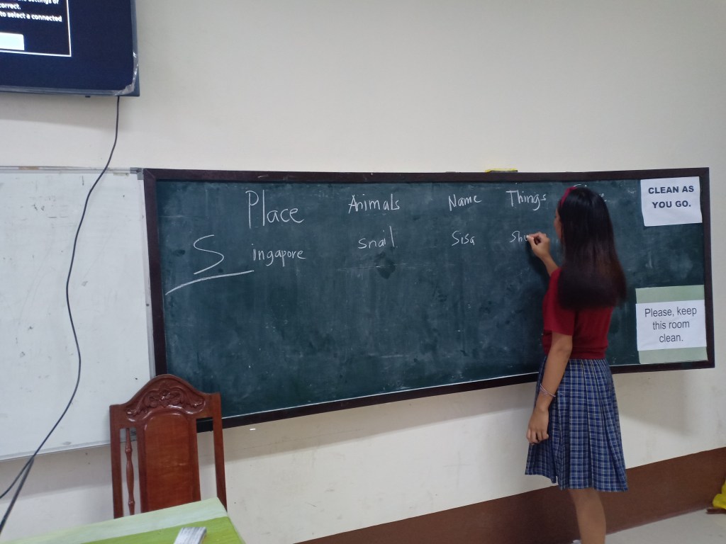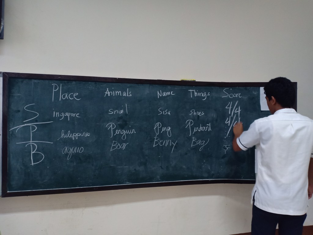 Before I discuss my topic, I prepared an activity called (PANT-S) “Place, Animals, Names, Things and the Scores”. The goal of this game is that the terms that they enter from different categories with respect to the given letters is not repeated or else, the point will take the half. The class participated attentively because its a traditional game for them, they play this type of game since elementary and high school days.